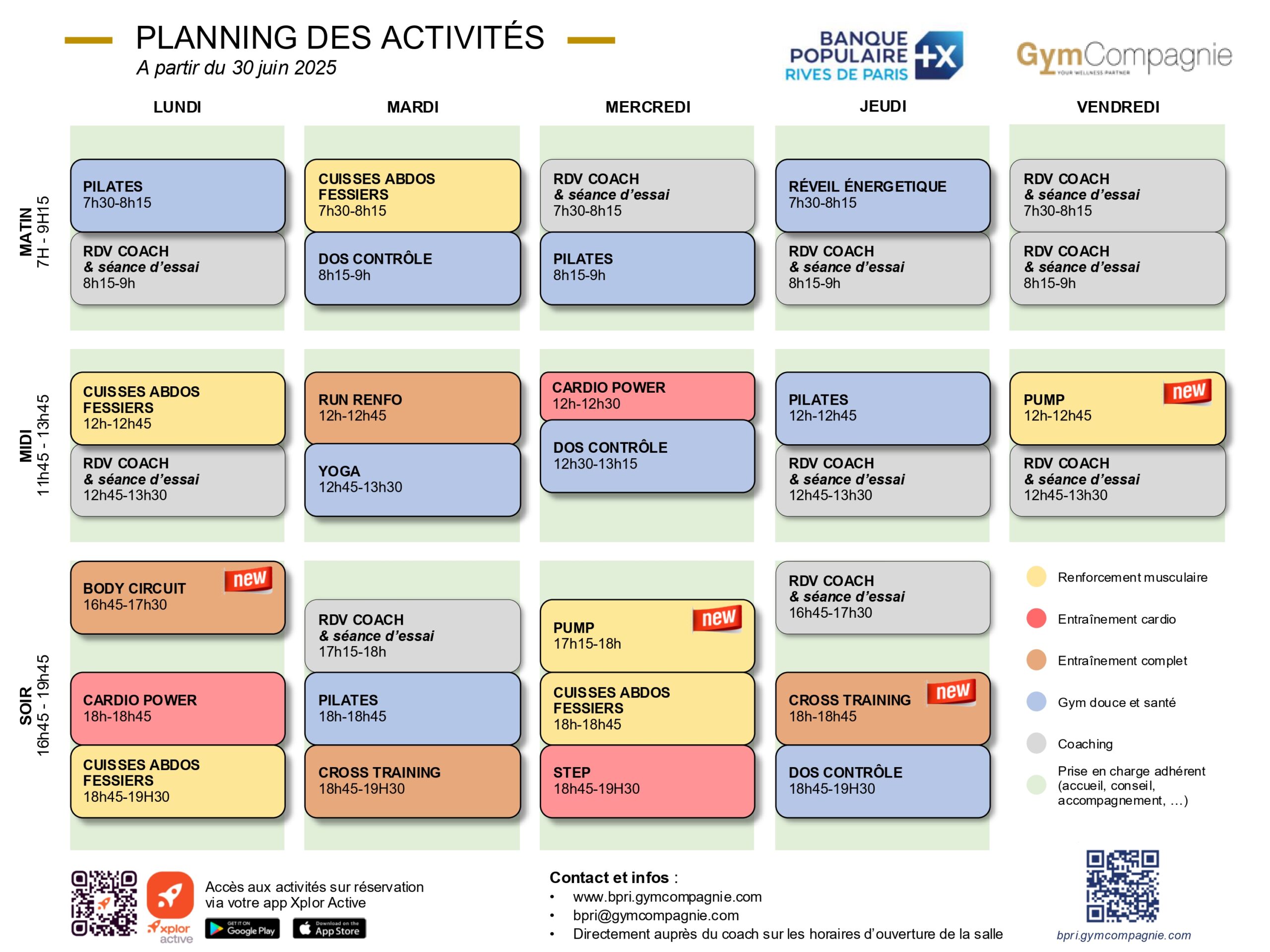 via l’appli XPLOR ACTIVE de votre club Gym Compagnie BPRI.